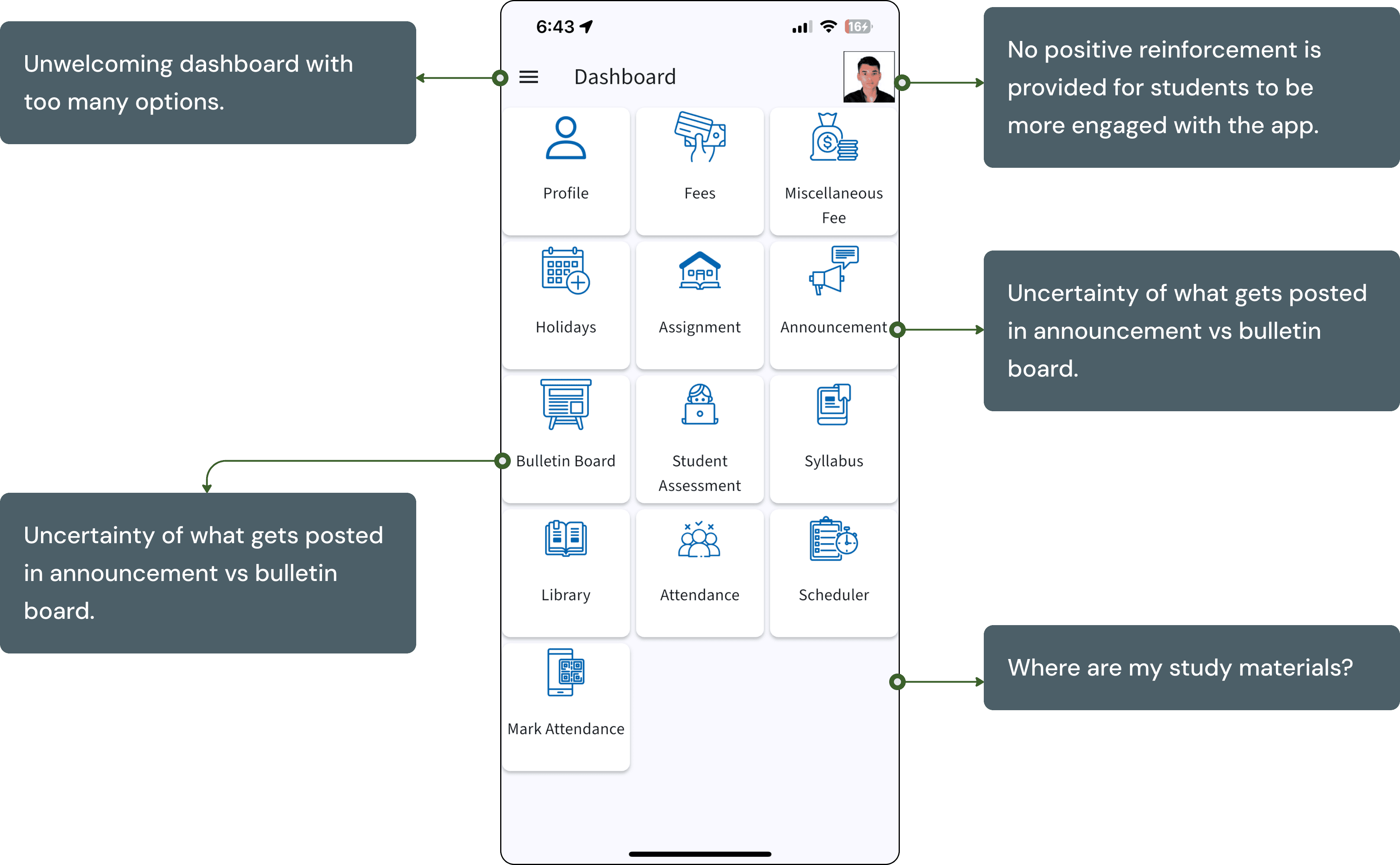 Used affinity mapping to identify themes. The student experience was defined by missing feedback loops. There was no way to know if they were doing well, what they had missed, or how their actions connected to outcomes. The system created anxiety, disengagement, and emotional fatigue.